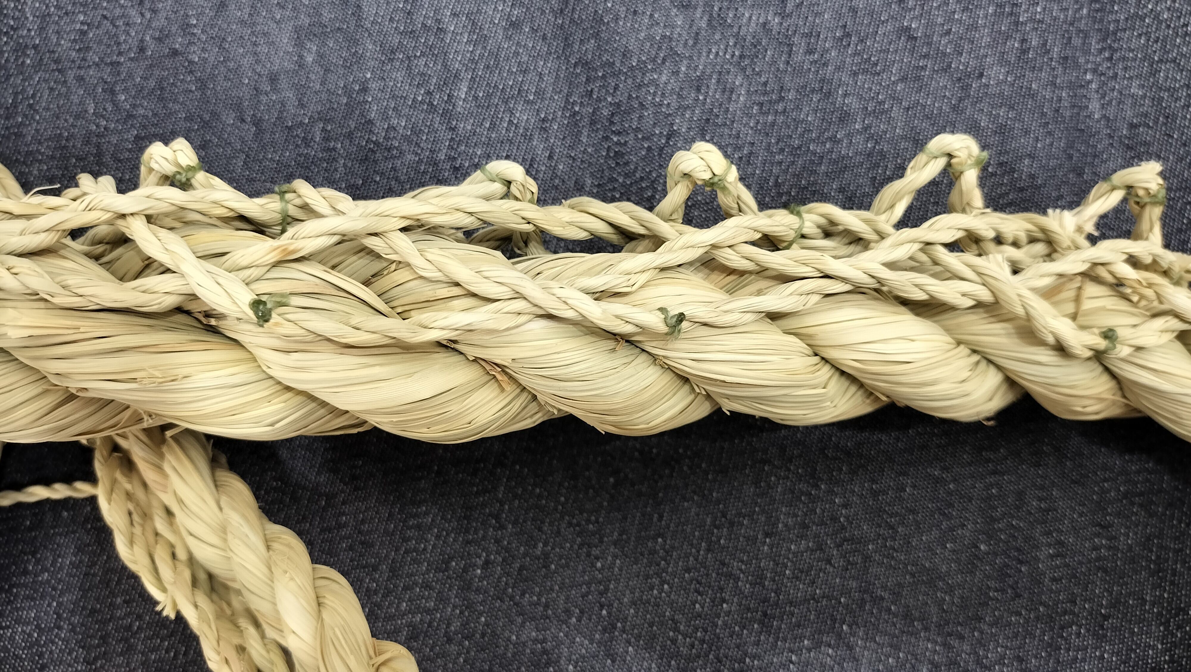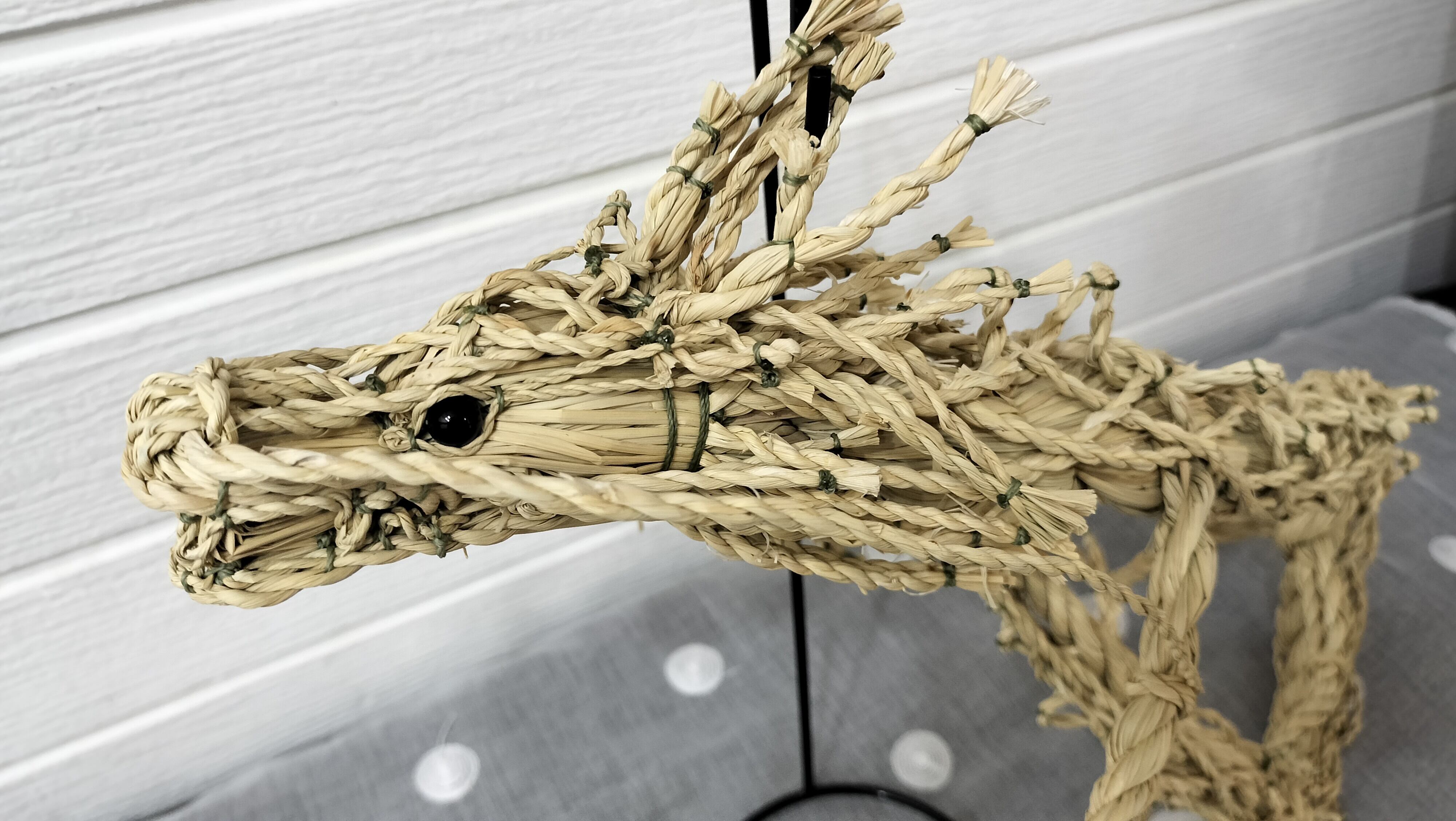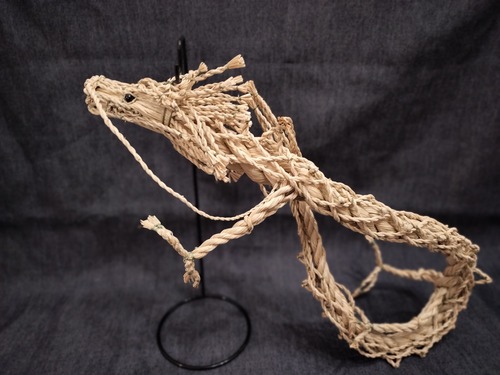 体長約1mの龍しめ縄、青刈りの稲わら製です(眼はオニキス使用)お部屋に飾ってお楽しみください。(50×35×15)